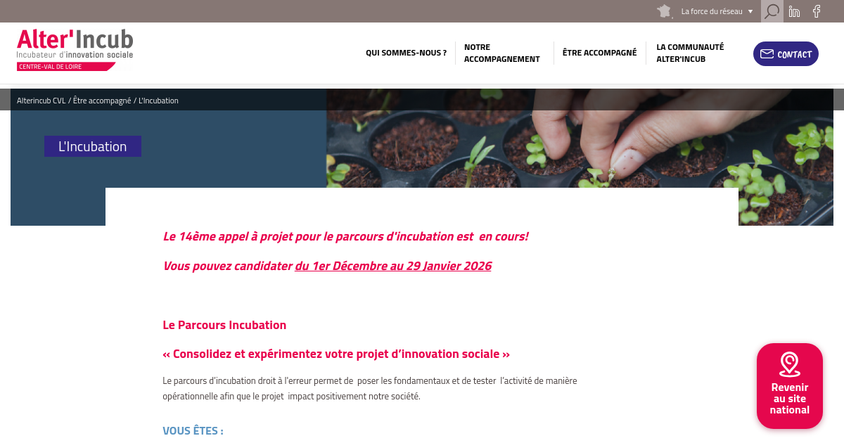 Le 14ème appel à projet pour le parcours d'incubation est en cours!