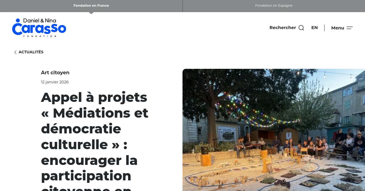 4e édition de l’appel à projets « Médiations et démocratie culturelle » destiné à soutenir des initiatives artistiques et culturelles conçues avec et pour les habitants, dans les territoires ruraux. Par la fondation Carasso. Date limite : 27.02.2026