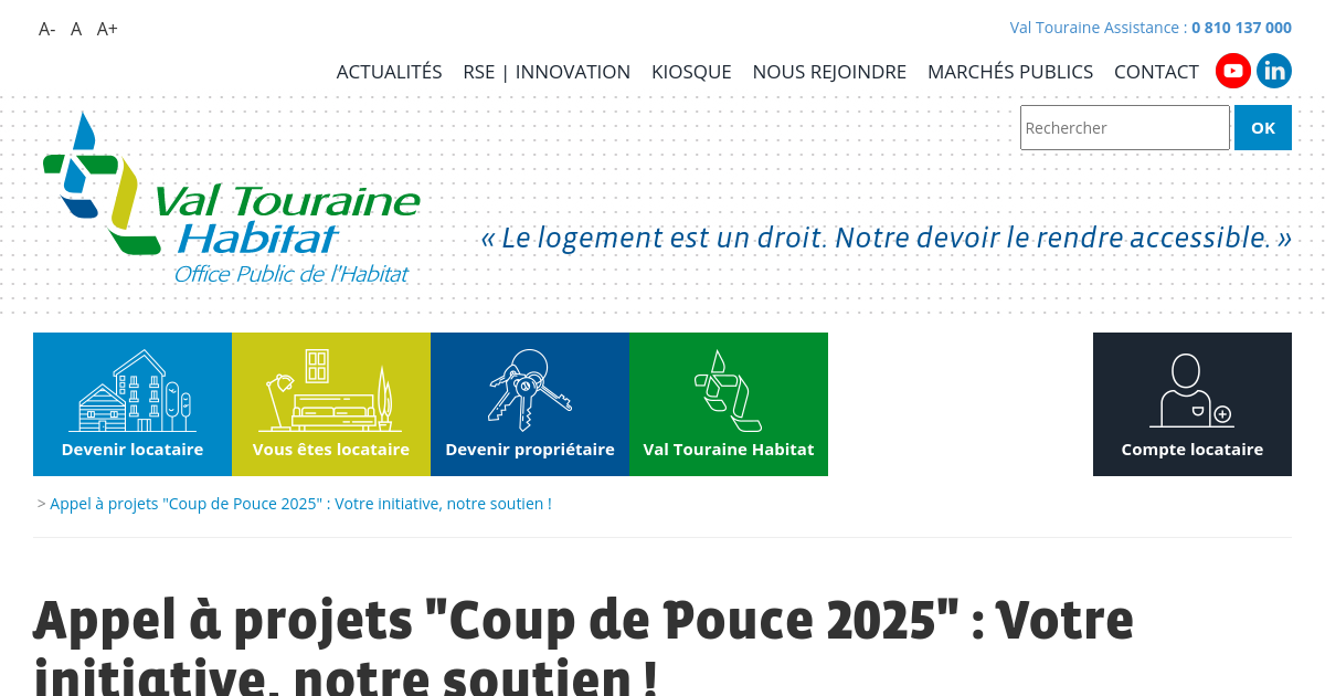 Val Touraine Habitat organise son appel à projets « Coup de Pouce » pour soutenir financièrement 10 initiatives menées pour ou avec les habitants de son patrimoine sur le département de l’Indre-et-Loire.