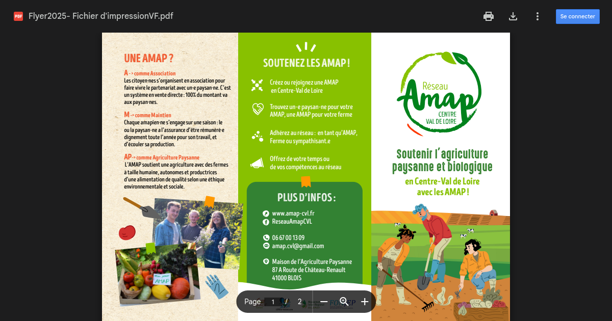 FLYER de présentation du système AMAP et du mouvement des AMAP sur la région CVL, cela peut être utilisé pour faire connaître le réseau comme interlocuteur pour tout ce qui concerne les AMAP (Association pour le Maintien d'une Agriculture Paysanne)