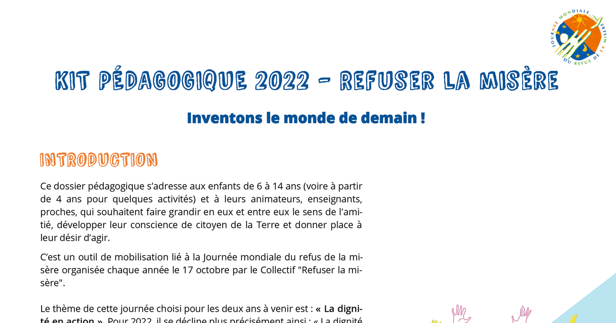 Un outil de mobilisation lié à la Journée mondiale du refus de la misère.