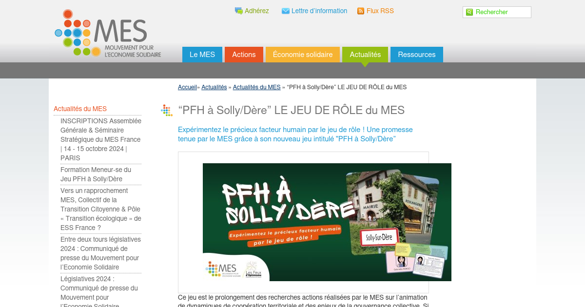 Expérimenter le précieux facteur humain par le jeu de rôle : comment mettre en œuvre des projets collectifs, mais surtout comment créer les cadres de la confiance et de respect mutuel préalables à toute démarche coopérative ? Le but du jeu est de créer une initiative dans le village de Solly/Dère, qui répondent à un besoin de biens ou de services des habitants. Les joueurs doivent obtenir le maximum de points collectifs pour atteindre le Précieux Facteur Humain.